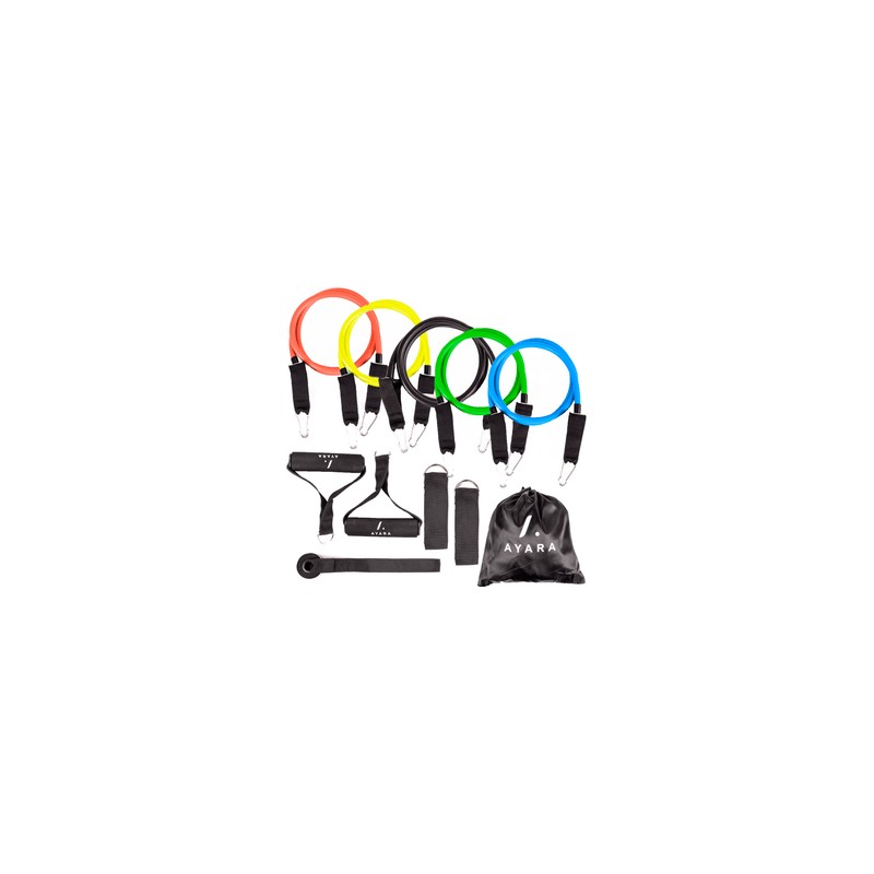 Set de 11 Ligas de Resistencia Ayara Fitness SET11 MulticolorSet de 11 ligas elásticas de resistencia marca Ayara SET11¿Te gustaría tonificar tu cuerpo de una manera fácil y sencilla? ¿Aburrido de las tediosas pesas? AYARA tiene una solución para crear tus rutinas de fortalecimiento muscular más divertidas y precisas con este fabuloso set de 11 ligas de resistencia. ESCOGE DIFERENTES NIVELES DE RESISTENCIA.Las ligas AYARA están elaboradas con látex natural el cual permite una resistencia al desgaste mayor. Además, cuentan con diferentes niveles en cada una de ellas, úsalas solas o crea combinaciones infinitas para crear rutinas de ejercicio más potente y logres tonificar tu cuerpo o cumplir tu meta y verte espectacular. SEGURIDAD EN TUS RUTINASEn AYARA nos preocupamos por ti y seleccionamos los mejores materiales para que tus rutinas sean súper seguras. Las ligas tienen un SISTEMA DE SEGURIDAD MEDIANTE HEBILLAS y ANILLAS DE METAL REFORZADO que las mantienen unidas a las mancuernas y evitan el desprendimiento de estas. ANCLAJE DE PUERTA PARA RUTINAS SEGURASEste set incluye un SISTEMA DE ANCLAJE DE PUERTA FORTALECIDO el cual sirve para realizar rutinas del tronco superior e inferior, solo es cuestión de que atores el tope del anclaje en la ranura, ajustes la altura y listo, podrás realizar tus ejercicios de forma súper segura. SISTEMA DE SUJECIÓN DE TOBILLOS AJUSTABLEEste set incluye DOS TIRAS AJUSTABLES CON ADHERENCIA SUPERIOR para sujetar los tobillos y realizar rutinas del tren inferior con mejor eficacia gracias a que están elaboradas con velcro de alta adherencia. Consigue esos glúteos y piernas firmes que tanto deseas.